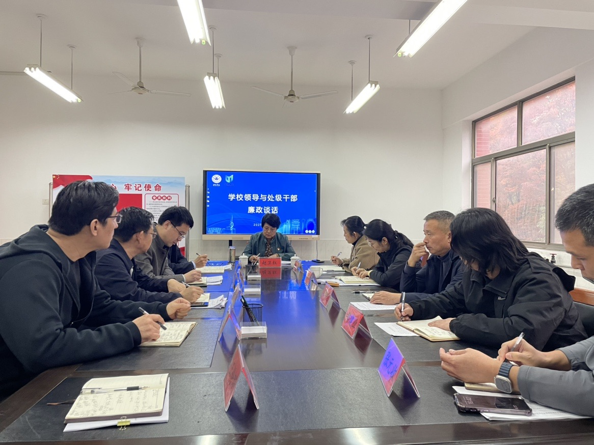 学院全体处级干部参加廉政谈话,学校党委宣传部相关负责同志和纪委有关人员、学院科级干部列席廉政谈话。